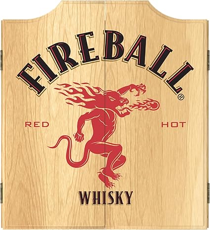 Amazon Com Trademark Global Dart Board Cabinet Set Fireball Dartboard Game Includes 6 Steel Tip Darts Scoreboard Hanging Wood Cupboard Wooden Sports Outdoors